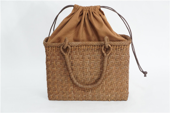 天然山葡萄の蔓のバッグかごです。山に自生する山葡萄のつるを使用し熟練した職人さんが手作りで編み上げています。天然素材の丈夫で美しい一生ものです。 一度山葡萄のかごを使って見ませんか。使えば使うほど色合いが綺麗になります。 持ちやすいサイズです。普段使いはもちろん、おでかけに通年使える素敵なバックです。 素材:山葡萄の蔓の一番皮 一番皮とは…外側樹皮にほとんど手を加えずありのままの状態で編み込んだものです その為お色はシックな濃いめで自然の蔓の味わいを存分に 感じられます. サイズ: 縦 約 20 cm 横 約 25 cm 幅 約 10 cm 持ち手(立ち上がり)約 15 cm 目隠し用内布付き 重さ 約 400 g お客様に知っておいていただきたいこと 性質上ひごに節・ムラ・剥がれ・繊維に沿った割れなどがございます。 自然素材の特性としてご理解ください。 使い込むことにより皮の剥がれなどは色が馴染み風合いが増してゆきます。 繊維に沿った割れも強度的には問題がございませんので、ご安心ください。 手作り商品ですので、1点、1点サイズ・重量・風合いなどに違いがございます。 画像は、見本になりますがご了承の上、ご購入お願い致します。 |
